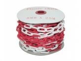 Высококачественная пластиковая оградительная цепь. Цепь выполняет роль сигнального ограждения, не ржавеет, а также благодаря контрастному цветовому исполнению превосходно видна в любое время суток. Легкий вес цепи в сочетании с высокой разрывной нагрузкой (около 100кг) позволяет значительно уменьшить нагрузку на опорные столбики.